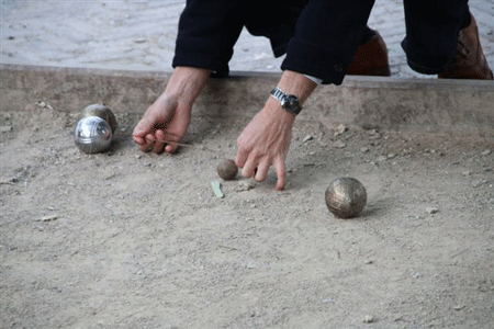Teams van drie streden om de hoogste eer op het jeu de boulesbaantje voor restaurant Nel. Ondanks de bloedserieuze en extreem professioneel opgezette competitie bleek gemoedelijkheid troef. Er werd rondom de baan en op het terras van Nel kalm gekeuveld. Boules streden met bitterballen om belangstelling. Zo moet een lome Parijse namiddag onder ritselende platanen eruit zien.