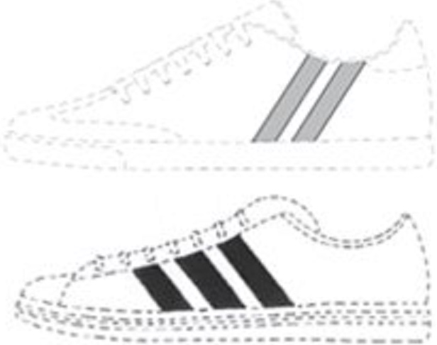 Andersgeplaatste tweestreep positiemerk toch wel visueel gelijk aan Adidas' driestreep