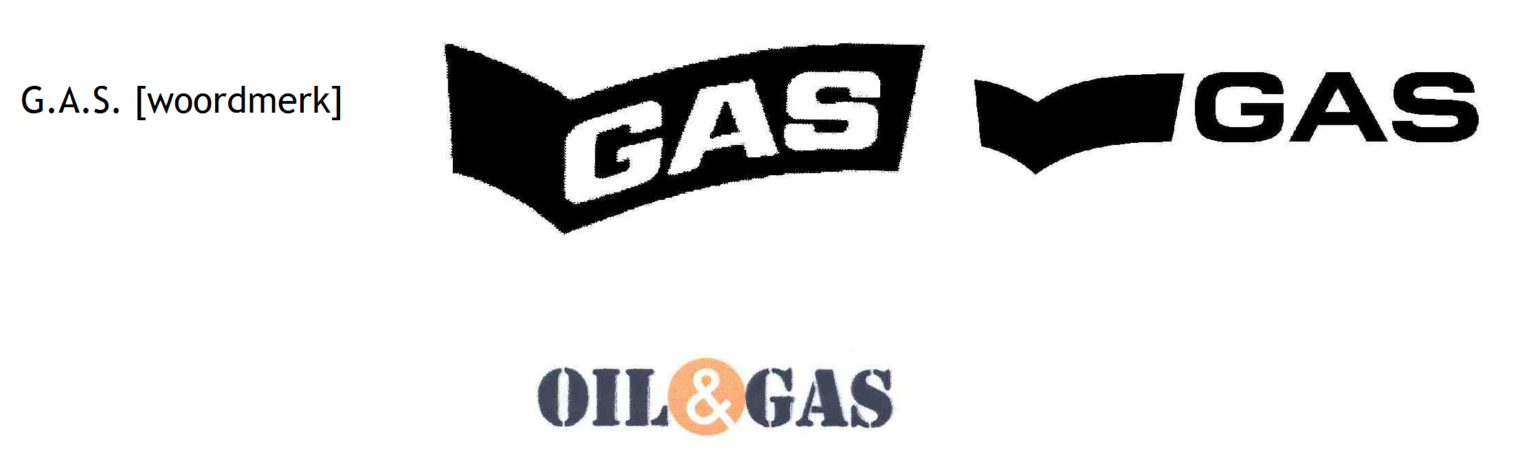 Merkenrecht. Oppositie o.g.v. ouder EU-woordmerk G.A.S. EU-woord-/beeldmerk [GAS] tegen woordmerkaanvrage GASOIL (allen: kleding). Oppositiebeslissing. Toegewezen. Merk wordt niet ingeschreven.