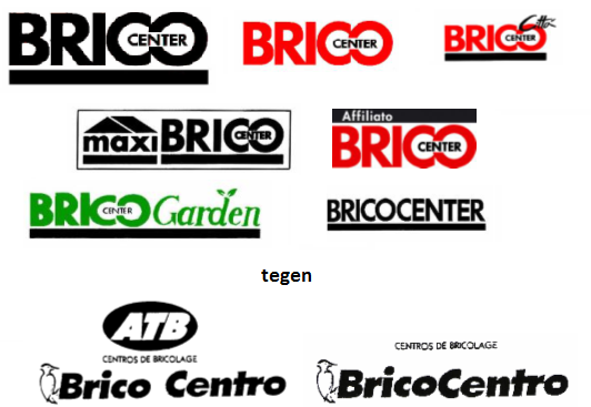 Merkenrecht. Negen oppositieprocedures gebaseerd op oudere Gemeenschapsbeeldmerken ATB CENTROS DE BRICOLAGE BRICO CENTRO en CENTROS DE BRICOLAGE (voor bouwmarkten) tegen aantal Gemeenschapsmerkaanvragen met bestandeel BRICO CENTER (klik plaatje voor vergroting van aangevraagde/ingeroepen). Afgewezen door OHIM, deels toegewezen door Gerecht EU. De term ‘brico’ (doe-het-zelf) beschrijvend, maar zelfs dan kan het (zwak) onderscheidend vermogen bezitten waardoor bij identieke waren verwarringsgevaar kan ontstaan.