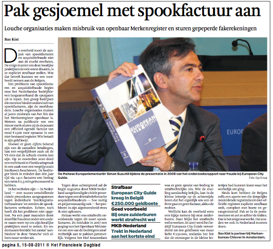 Bas Kist, 'Pak gesjoemel met spookfacturen aan', Financieele Dagblad 15 augustus 2011