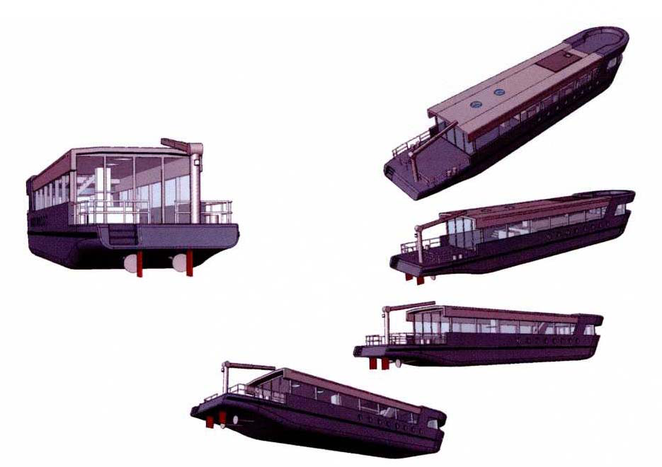 Auteursrecht. Modelrecht werk-/woonschip (klik afbeelding voor vergroting). Stukgelopen Samenwerking.