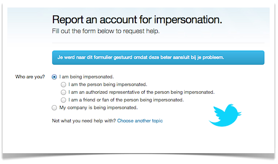 Zoals Sven Kramer in de uitzending terecht opmerkte biedt Twitter hiervoor een vrij eenvoudig formuliertje waarmee misbruik (‘impersonation’) gemeld kan worden. Twitter voert dus streng beleid om haar platform binnen de perken te houden. Overigens waren niet alle tafelgasten overtuigd van de eenvoud van deze tool. Onze eigen ervaring leert echter dat melden vrij goed werkt. In ieder geval kon Mark Rutte zonder veel moeite een einde maken aan @mark_rutte. Twitter had toen, mogelijk onterecht, weinig oren naar het verweer dat het om een parodie ging.