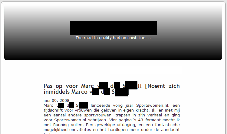 Op de website hebben gedaagden een artikel geplaatst 'Pas op voor Marc vd S!! [Noemt zich inmiddelx Marco vd S]' en deze voorzien van een foto van eiser.