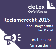 De Balie, Amsterdam, donderdag 23 april 2015, 12.00 - 15.15 uur. Dé jaarlijkse lunchbijeenkomst over het reclamerecht. Jan Kabel en Ebba Hoogenraad bespreken belangrijke en actuele jurisprudentie.