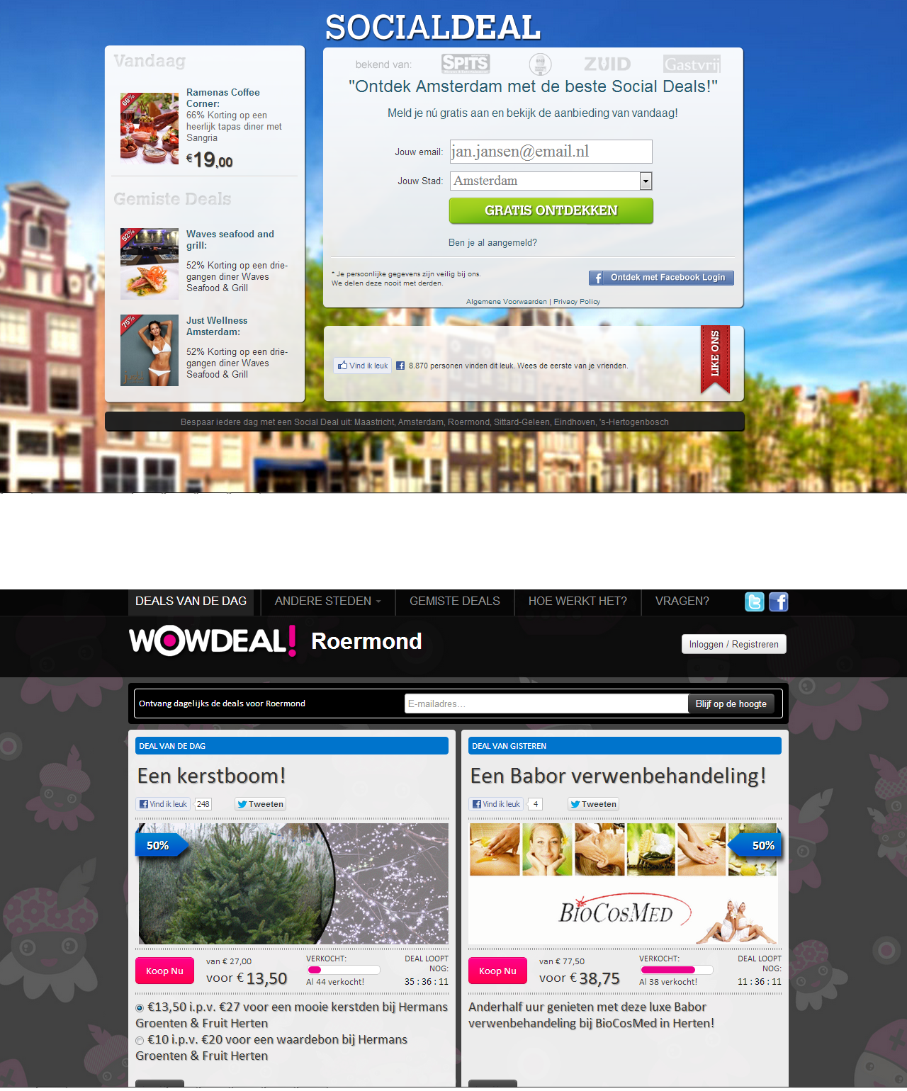 Auteursrecht website. Slaafse nabootsing. Partijen exploiteren een onderneming gericht op de online verkoop van kortingsbonnen. In overleg met ondernemers in gemeenten stelt Social Deal een aanbieding samen. Deze aanbieding wordt voor een periode van 24 of 48 uur op de site geplaatst. Consumenten kunnen deze kopen en verzilveren bij de ondernemer.
